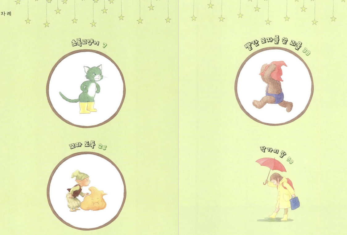 장난기 많은 초록 고양이가 꽃담이네 욕실에 나타난 사연을 그린 '초록고양이'가 주인공입니다. 아무도 없는 꽃담이네 집에서 꼬마 도둑과 초록고양이가 한판 승부를 벌이는 '꼬마도둑', 꽃담이 꿈에 나오는 빨간 모자를 쓴 괴물의 정체를 밝혀 가는 '빨간 모자를 쓴 괴물'이 실려 있습니다. 탁월한 이야기꾼 위기철 작가가 들려주는 세 편의 이야기가 운율감과 생동감 있는 문장으로 재미있게 펼쳐집니다.