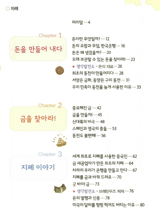 돈이란 무엇일까? 돈은 어떻게 만들어지나? 내 맘대로 돈을 찍을 수 있다면? 같은 돈에 대해 아이들이 가질 만한 궁금증과 호기심에서부터 뉴스에 많이 나오는 환율 문제와 국가 간 무역 관계, 은행 파산으로 인한 소비자 피해 같은 시사적인 문제까지 흥미진진하게 연결하며 펼쳐진다.