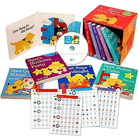‘Spot(스폿)’이라는 아기 강아지가 장난치면서 노는 스토리로 집 안을 어지르는 솜씨가 일품인 내용입니다. 짧은 문장이 천천히 나오고 전반적으로 잔잔합니다. 아이가 영상을 좋아한다면 플랩북 10권짜리 세트를 사서 읽어 주면 더 효과적입니다.