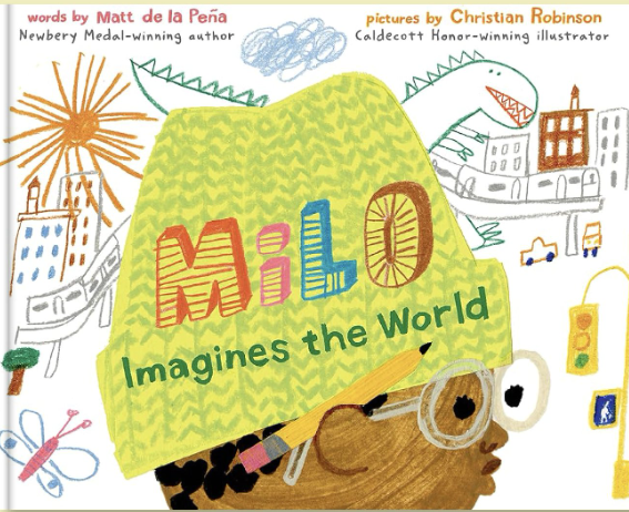 크리스천 로빈슨의 "Milo imagines the world"는 형실과 주인공 마일로가 스케치북에 그리는 그림의 세상이 번갈아 나오면서 아이가 그림으로 현실을 수용하고 성장해 가는 모습을 그리고 있습니다. 로빈슨이 표현한 다양한 세계가 교차하는 그림이 큰 깨달음을 주는 동화책입니다.