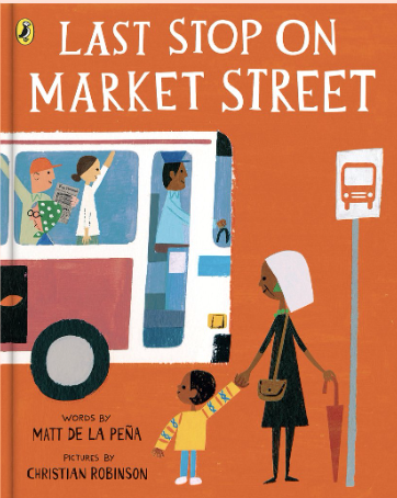 크리스천 로빈슨의 "Last stop on market street"는 버스를 타고 가난한 동네에 간 할머니와 아이가 무료급식소에서 봉사하는 이야기입니다. 이곳에서 아이가 다양한 사람을 만나 유대감을 형성해 나갑니다. 뉴베리상, 칼데콧상, 코레타 스콧 킹 상을 수상하면서 미국 아동문학 최고상을 휩쓸었습니다.
