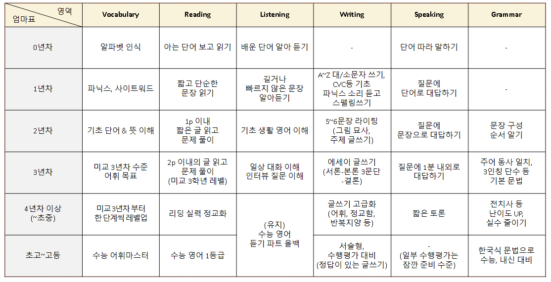 엄마표 영어, 목표 로드맵