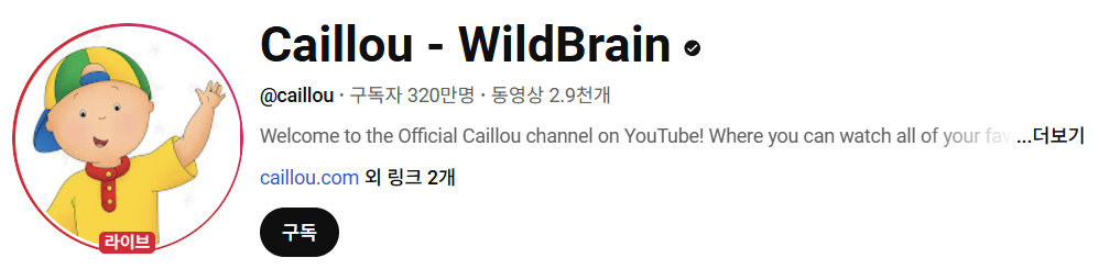 까이유는 다들 많이 아시는 유명한 애니메이션입니다. 까이유를 좋아하는 아이라면 검색할 때 "Caillou animal" "Cailou Sports day"라고 아이가 좋아하는 주제를 추가로 검색해 보세요.