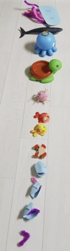 크고 작은 장난감을 준비합니다.