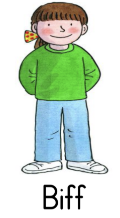 예시 : I live / my old dog, / Spotty.