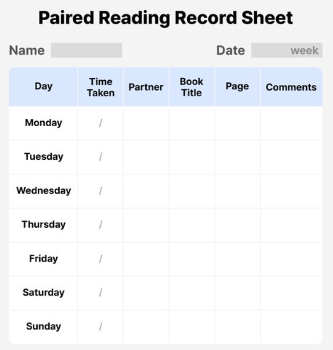 짝읽기를 마친 후 기록을 하면 책 읽는 습관을 들이는 데 도움이 됩니다. 날마다 성장한 흔적이 보이기 때문에 동기 부여가 됩니다. 기록하는 법은 수첩에 같은 칸을 나누어 책을 읽는 데 소요된 시간, 같이 읽는 사람, 책 제목, 읽은 페이지, 양육자의 코멘트를 적어 놓습니다.