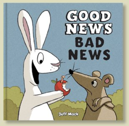 이 그림책에 나오는 문장은 'Good news'와 'Bad news' 뿐입니다. 대신 그림이 좋은 상황과 나쁜 상황을 설명해 줍니다. 예를 들어 토끼가 소풍 도식락을 싸왔는데(good news) 갑자기 비가 오는 상황(bad news)을 그림으로 보여 줍니다.