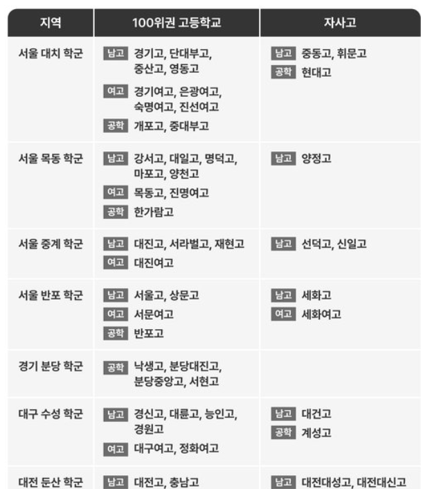 최상위권 학군지 주요 고등학교