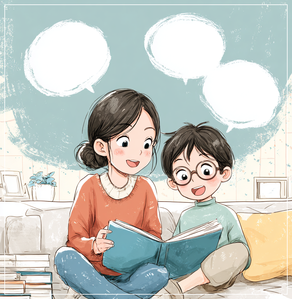 [핵심] 짧은 문장부터 긴 문장까지, 엄마가 먼저 정확한 발음과 의미 단위로 끊어 읽어주면 아이가 자연스럽게 따라 하며 유창성을 키울 수 있습니다.
