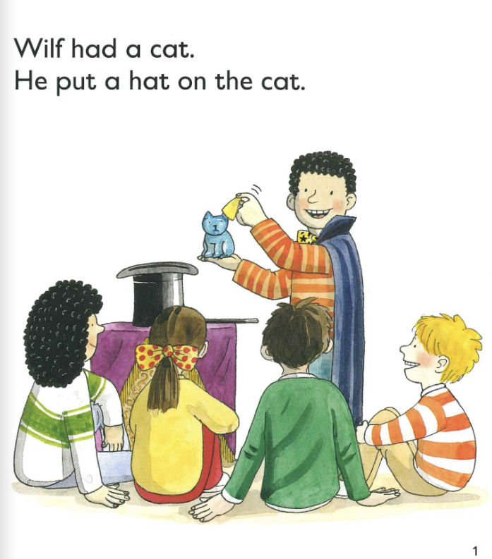 Stage 1: 한 페이지에 한두 단어의 짧은 문장, 직관적인 그림으로 구성되어 아이가 부담 없이 시작할 수 있습니다.