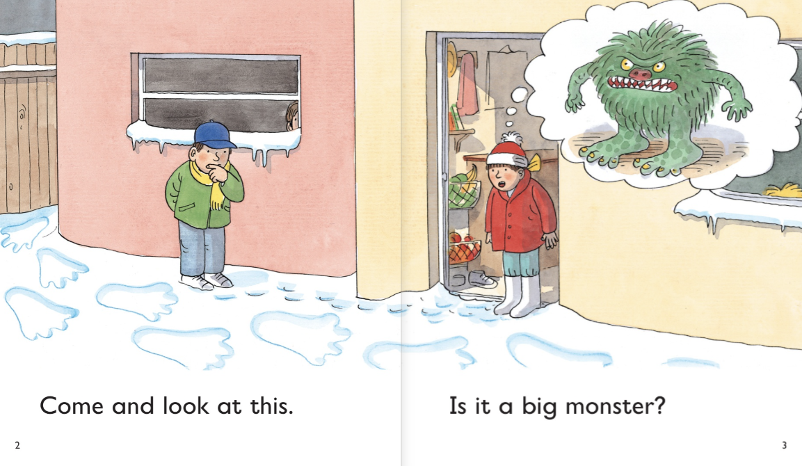 예를 들어, 『Big Feet』이라는 책의 한 페이지를 보세요. 그림 속 아빠가 눈 위를 걷는 모습을 보여주며 'Big feet!'이라는 소리가 입혀질 때, 아이는 그림을 통해 '커다란 발자국'의 의미를 완벽하게 이해합니다.